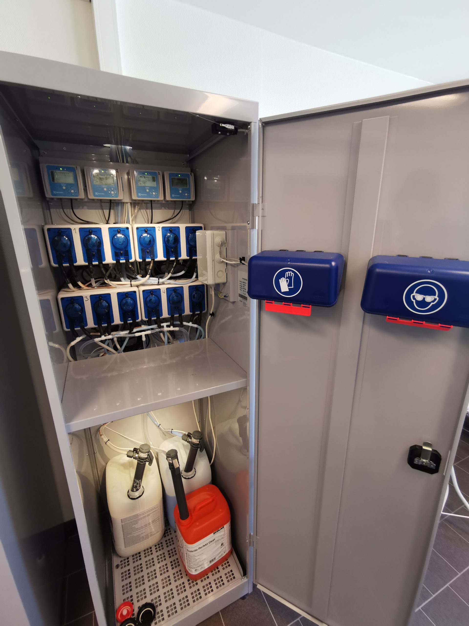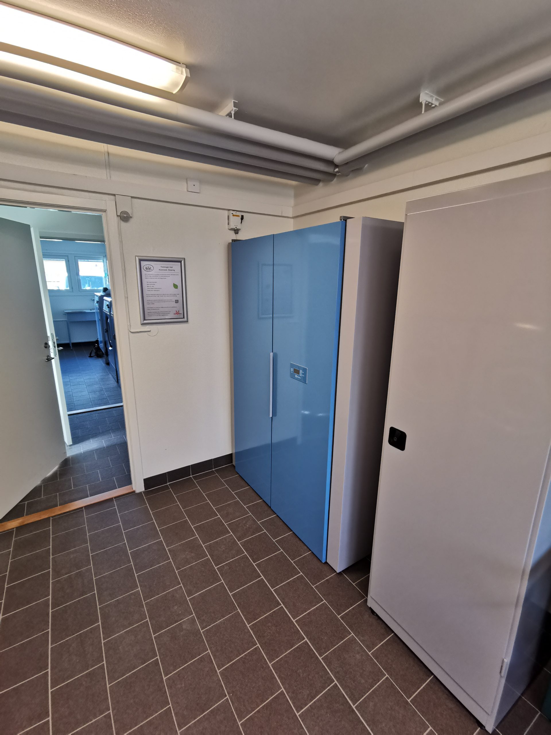 Automatisk dosering resulterar i en trevlig miljö i tvättstugan utan pulverspill och tomma tvättmedelskartonger. Självklart är samtliga maskiner av lågenergi-modell.